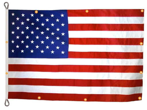 View full detailsFully dyed poly/cotton American Flag finished with heading & brass grommets. 100% Made in the USA Features: 2 Sizes Available Fully Printed Co...