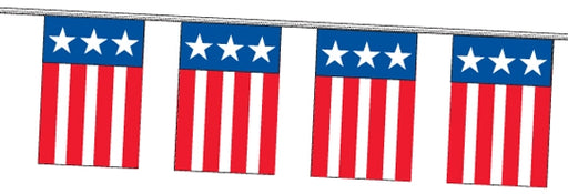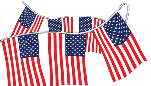 View full detailsFeatures: Flag Patriotic Pennants 4 Mil Heavy Duty Poly Material 12"x18" Pennants 60' Length 24 Flags Per String Sag Resistant Rope Made in USA