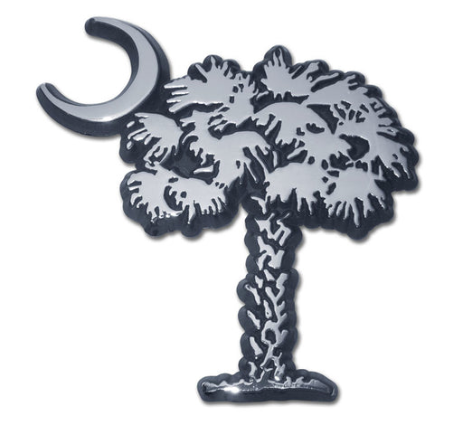 View full detailsSouth Carolina (Palmetto) shiny chrome auto emblem (3.5" x 3.5" x .125" ) by Elektroplate. All-metal (NOT plastic) with a shiny chrome finish. Atta...