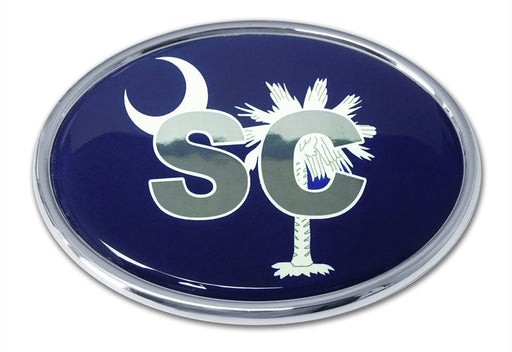 View full detailsSouth Carolina shiny chrome auto emblem (3.625” x 2.5” x .125”) by Elektroplate. All-metal (NOT plastic) with a chrome-plated frame and a full-colo...