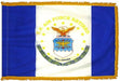 Flagman of America was started because we love this country. So we respect nothing more than the men and women that serve in our armed forces. Due to that respect, we only sell the highest quality, made in the U.S.A. military flags. Great looking and tough too! This nylon flag made from 100% Dupont Solar-Max nylon material. Our acid dye process saturates right through the flag producing deep and vivid colors that never crack or peel. Solar max fabric also has a special UV resistance built right into the weave of the fabric to minimize sun fade and chemical deterioration. It looks better and lasts far longer then ordinary nylon flags. The perfect choice for indoor presentation or parade use. The flag is finished with a pole hem with leather tabs and beautiful gold fringe. PROUDLY Made in the U.S.A.