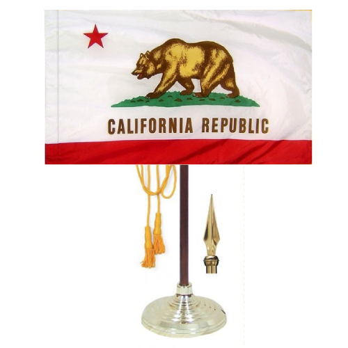 Introducing Flagman's meticulously crafted Indoor California Flag, a symbol of state pride and quality. This exquisite flag is meticulously constructed from lustrous 100% American made Nylon taffeta fabric, guaranteeing not only a soft and luxurious texture but also vibrant and enduring colors.