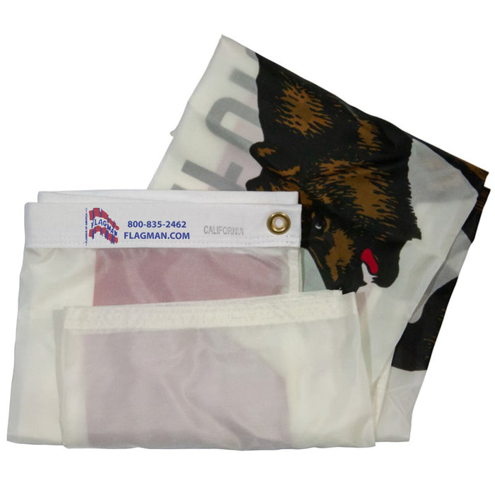 Elevate your display of state pride with Flagman's impeccably crafted California flags, designed to impress and built to last. Meticulously constructed from the finest American Made 100% Dupont nylon material, these flags embody a perfect blend of aesthetics and resilience.