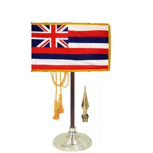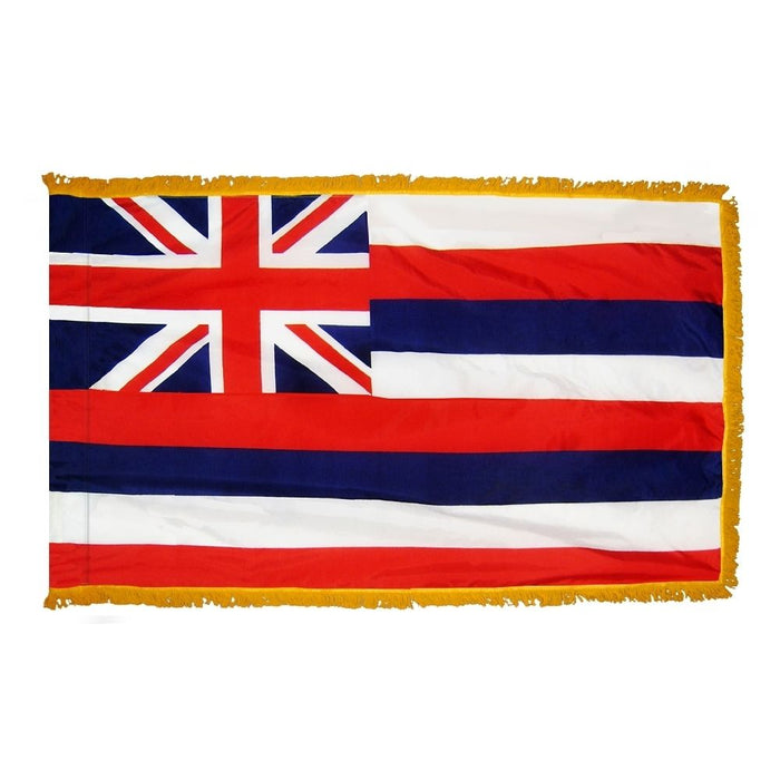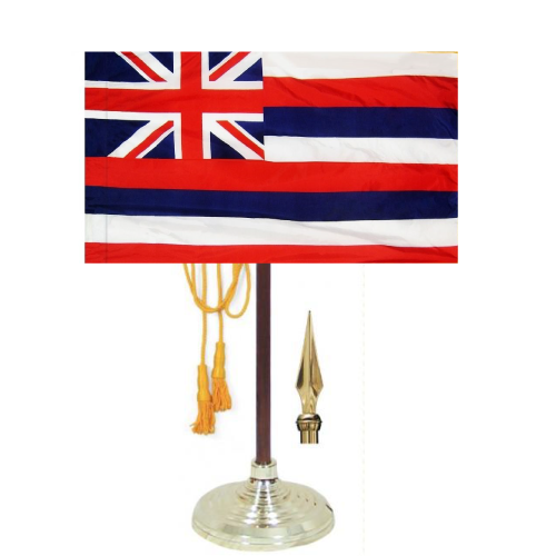 Introducing Flagman's meticulously crafted Indoor Hawaii Flag, a symbol of state pride and quality. This exquisite flag is meticulously constructed from lustrous 100% American made Nylon taffeta fabric, guaranteeing not only a soft and luxurious texture but also vibrant and enduring colors.