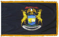 This State Flag is made of lustrous 100% Nylon taffeta fabric. With a soft feel and deep, permanent colors theres no better looking indoor flags. Theyre finished off with a flannel lined pole sleeve and are proudly hand made in the U.S.A. Available with or without gold fringe. Features:Deep Permanent Colors100% Nylon Taffeta FabricTaffeta Has A Soft and Shiny FeelFlannel Lined Pole SleeveProudly Hand Made in the U.S.A.