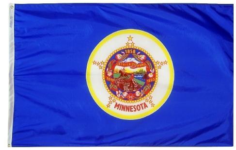 This is Flagman of America's exclusive Guardian™ Heavy Duty Polyester State of Minnesota flag. It is simply the toughest outdoor state flag on the market today. Guardian polyester flags are engineered to withstand high wind conditions and strong sunlight for as long as possible.  The flag is finished with durable canvas heading and brass #2 spur grommets .Stop living with tattered flags on your flagpole! Reduce your flag replacement cost with Guardian™ high wind flag fabric. Proudly hand made in the U.S.A.