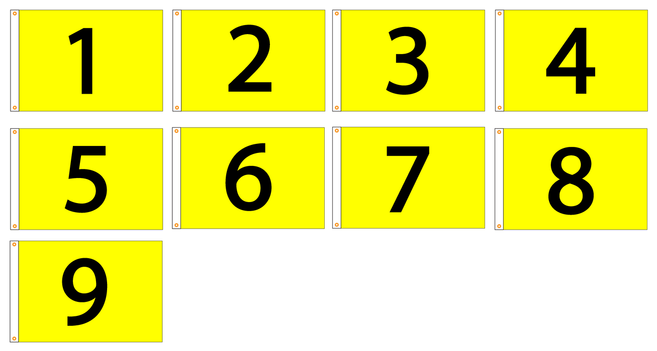 Flagman's premium nylon golf flags are hand sewn to give a rich detailed appearance and unmatched durability. They feature UV treated fade resistant colors, that will never chip, peel or run. With two rows of strong lock stitching on the hems and four rows on the fly end they will resist tattering in any kind of weather. Our 200 Denier Dupont Solarmax nylon is a better choice than 400 denier heavy sailcloth flags because they stand out better in light winds while a heavy flag may not show you the actual wind direction at all times. Flags are overall 14"" x 20"" and finished off with your choice of brass grommets or tube style pole sleeve.