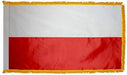 Introducing Flagman's meticulously crafted Indoor Poland Flag, a symbol of national pride and quality. This exquisite flag is meticulously constructed from lustrous 100% American made Nylon taffeta fabric, guaranteeing not only a soft and luxurious texture but also vibrant and enduring colors.