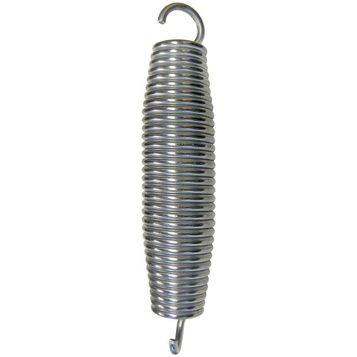 The spring is zinc plated high carbon steel having an overall length of 5.5" with the coiled section measuring 4".