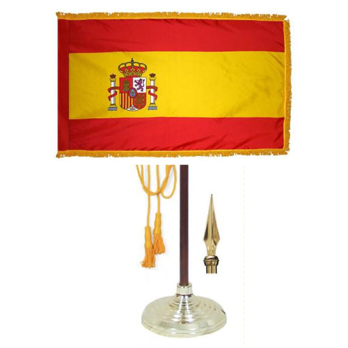 Introducing Flagman's meticulously crafted Indoor Spain Flag, a symbol of national pride and quality. This exquisite flag is meticulously constructed from lustrous 100% American made Nylon taffeta fabric, guaranteeing not only a soft and luxurious texture but also vibrant and enduring colors.