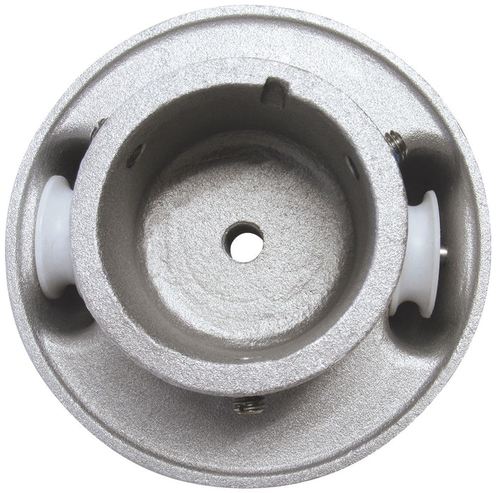 For converting or replacing the top pulley for external halyard flagpoles. Long lasting cast aluminum construction.