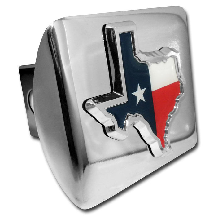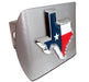 Stand tall like the Lone Star State with our Texas Shaped ALL-METAL Hitch Cover (front plate: 5” x 3.5”). Built tougher than plastic or pewter imitations, this unique cover features a bold all-metal Texas emblem mounted on a sleek black all-metal hitch plate. Fits standard 2” trailer hitch receivers and comes with our full refund guarantee if it doesn’t fit.