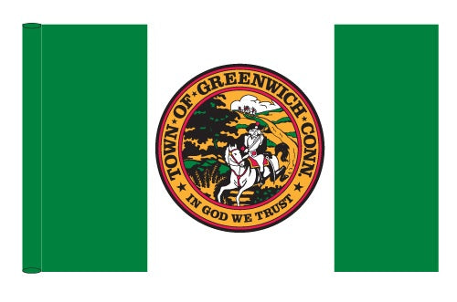 Town of Greenwich Printed Indoor Flag - Nylon - Single Reverse - Pole Hem & Gold Fringe