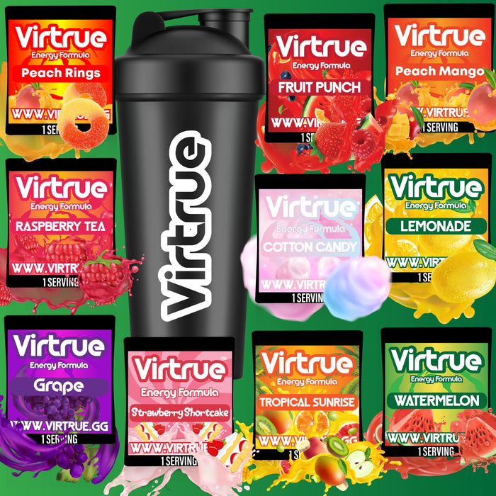 Experience them all with the 9-Flavor Sampler & Shaker Bundle—the ultimate way to find your favorite boost of energy! This powerhouse bundle gives you one serving of every electrifying flavor, including Fruit Punch, Watermelon, Grape, Cotton Candy, Lemonade, Peach Mango, Peach Rings, Raspberry Iced Tea, Strawberry Shortcake and Tropical Sunrise. Whether you crave bold and juicy, crisp and refreshing, or sweet and nostalgic, this sampler lets you taste them all while fueling your grind. Plus, it comes with a 32oz shaker for smooth, effortless mixing and free shipping to your door. The hardest part? Choosing your favorite. Try them all—power up, mix it up, and never settle for just one flavor!
