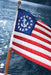 Our yacht ensigns are constructed with a high tenacity nylon creating the highest quality, greatest fade resistant nylon manufactured for outdoor use. They feature premium embroidered glossy stars and lock stitched sewn stripes. They are finished with the highest durable polester canvas heading reinforced with precision stitching and spurred brass grommets. The fly end is finished with four rows of superior lock stitching for a highly durable reinforced outdoor weather product. The stripes are sewn with color matched stitching, an extra "picky" detail not found on many other brands. Lightweight and strong they will fly in the slightest breeze. Proudly hand made in the U.S.A.
